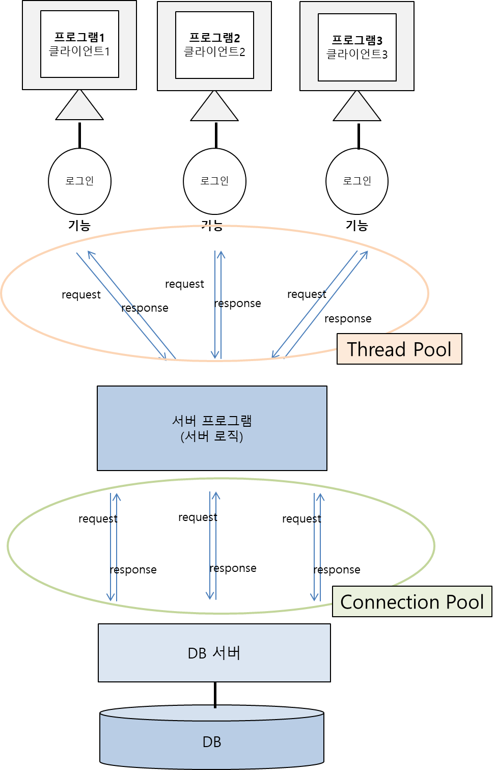 - 서버 로직 내에 Connection Pool 개념을 도입