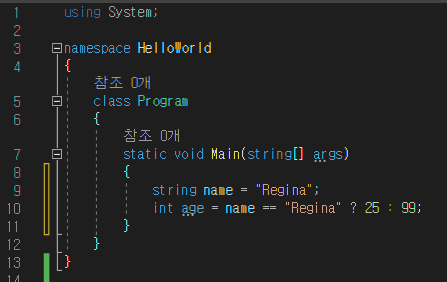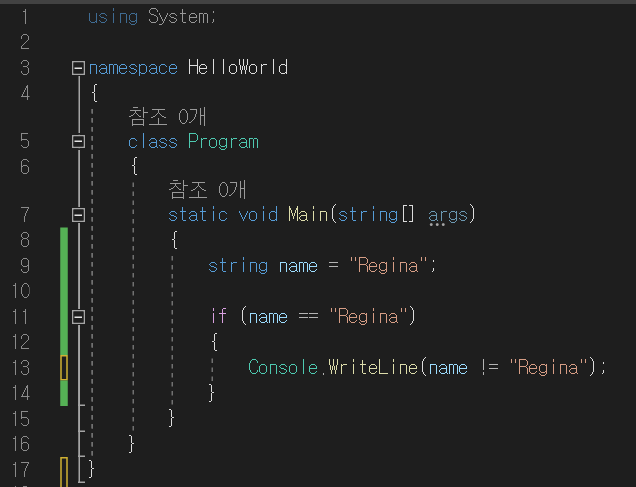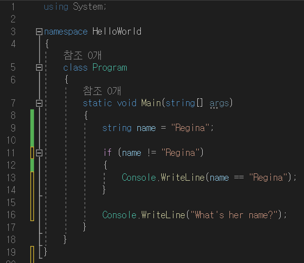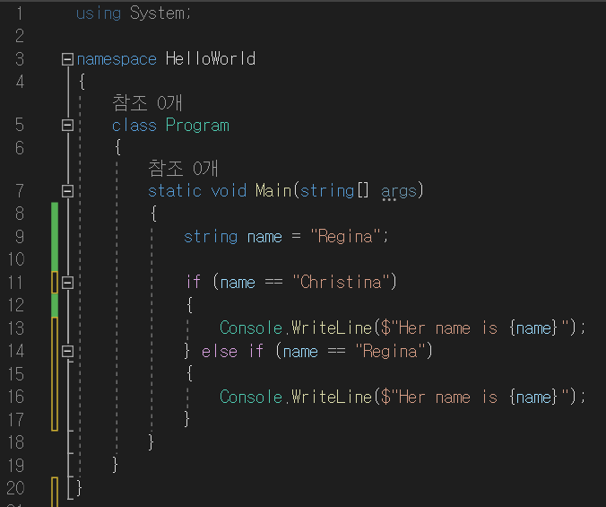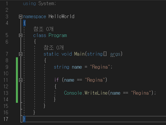 } else if (name == "Regina") // 조건에 충족함, True