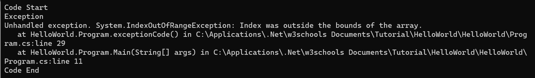 Console.WriteLine("Exception");